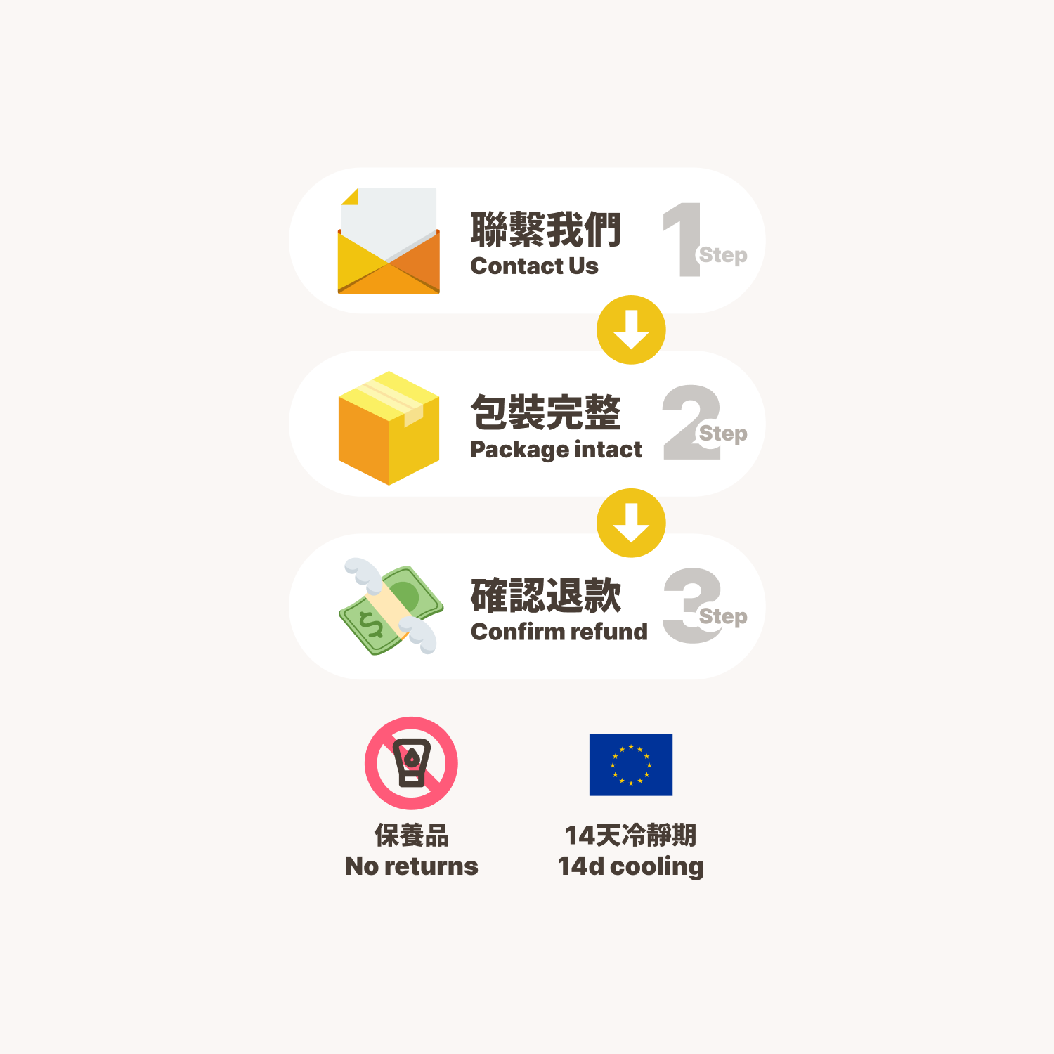 我們有 14 天退貨政策,這表示您在收到品項後有 14 天的時間可要求退貨。